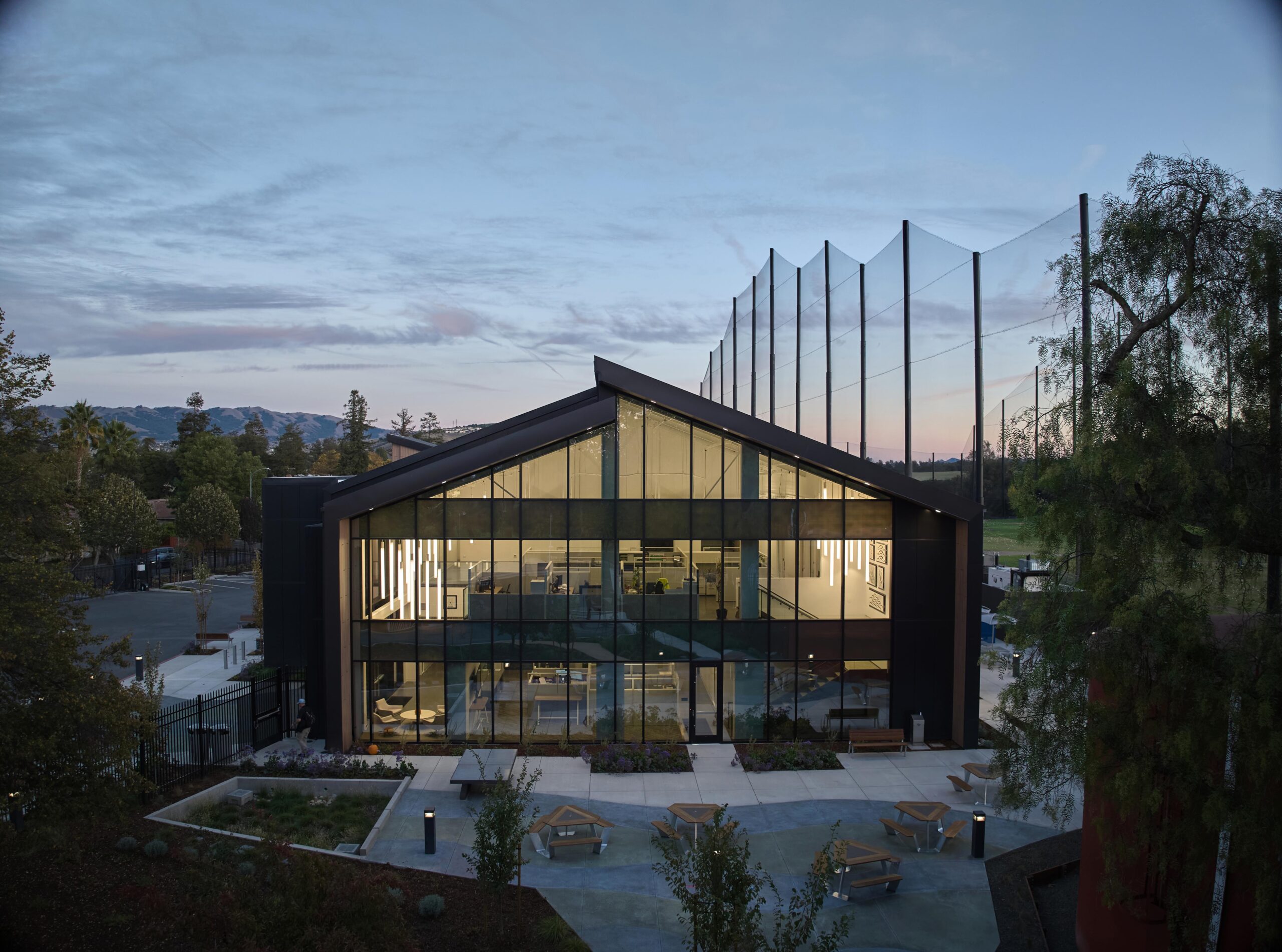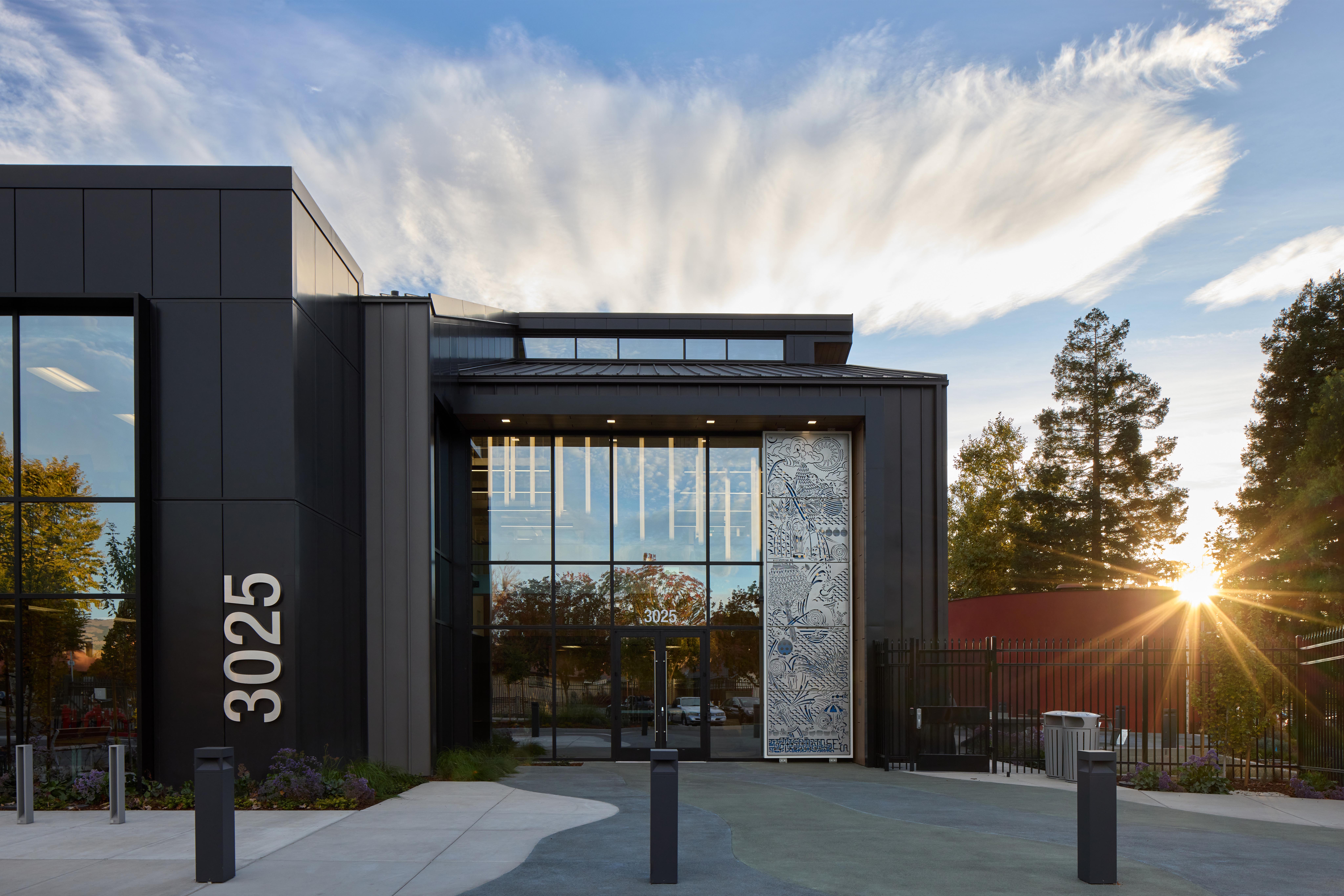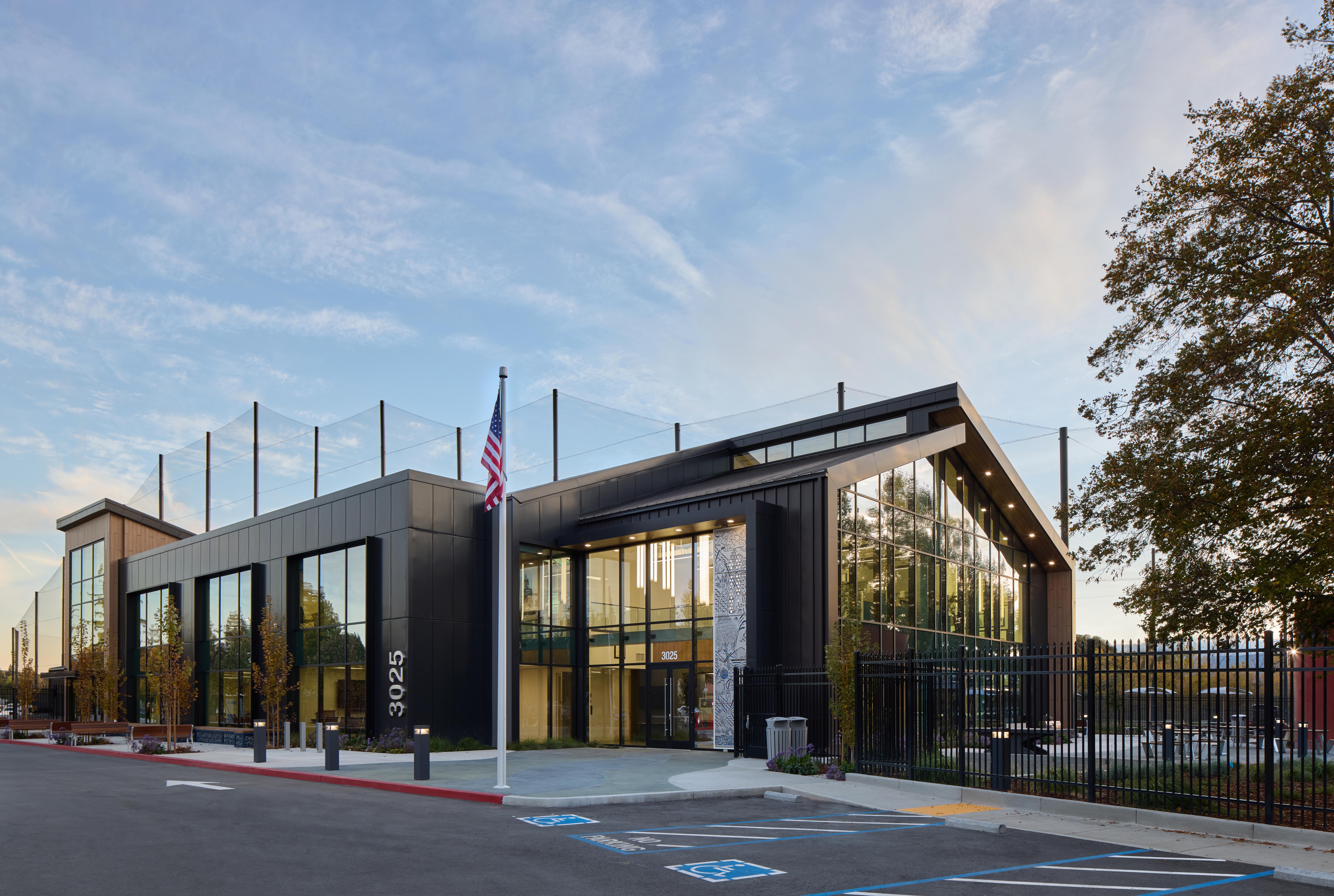 The project involves the construction of a new two-story administration office building with a total area of 22,280 SF, alongside a single-story storage building measuring 6,000 SF. It will feature a solar array and is designed to meet LEED Silver certification. The scope includes demolishing existing buildings, constructing a new communication tower, and completing necessary site work, parking, and landscaping.