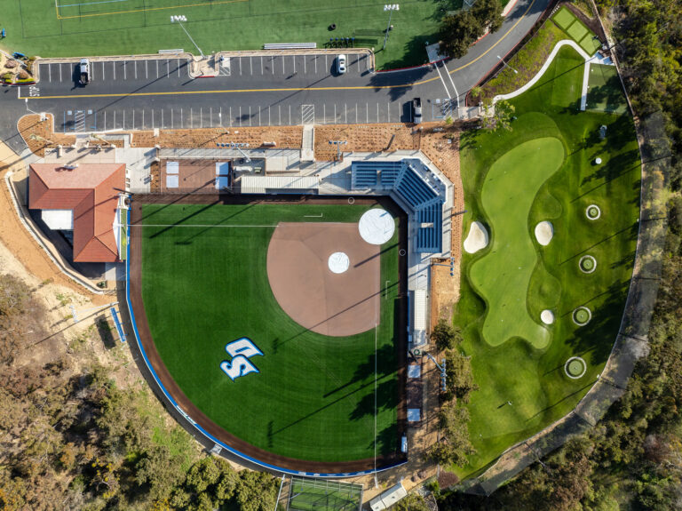 The stadium includes a press box, room for concessions, stadium seating to view the new turf field, new bullpens, and sunken dugouts.